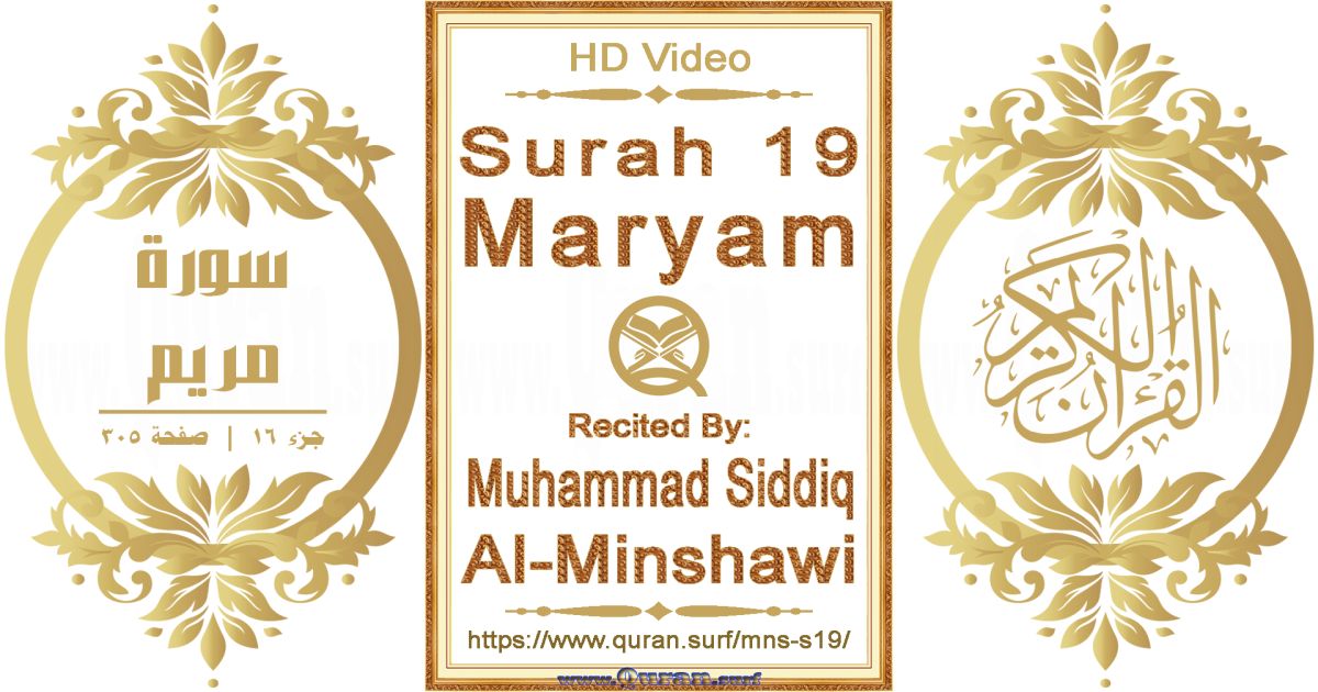 - Surah 19 Maryam video recited by Muhammad Siddiq Al-Minshawi: www.quran.surf/y/?mns=s19 *
