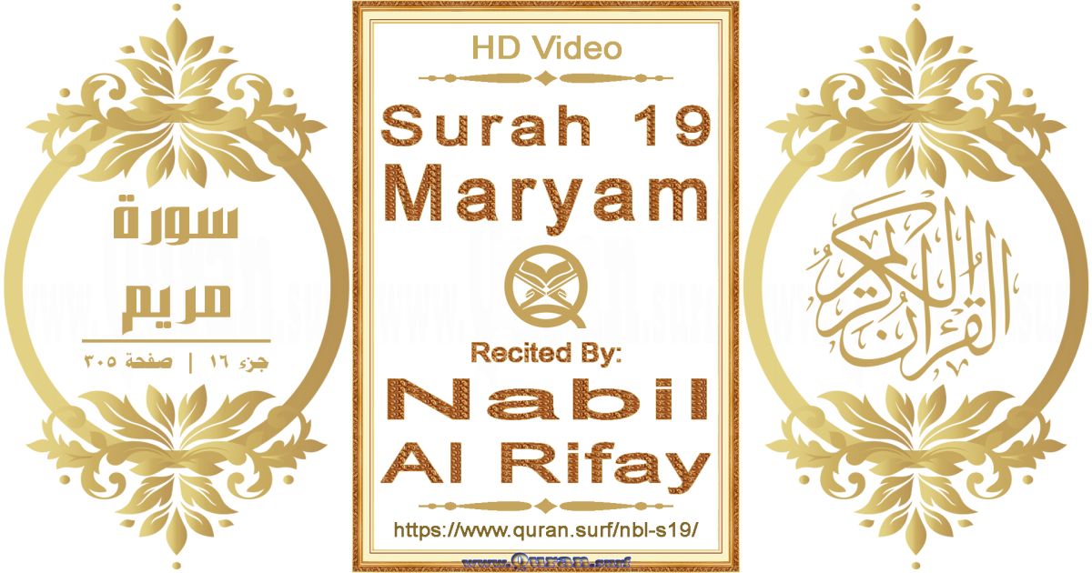 - Surah 19 Maryam video recited by Nabil Al Rifay: www.quran.surf/y/?nbl=s19 *