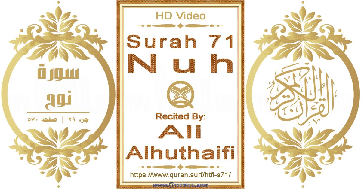 - Surah 71 Nuh video recited by Ali Alhuthaifi: www.quran.surf/y/?htfi=s71 *