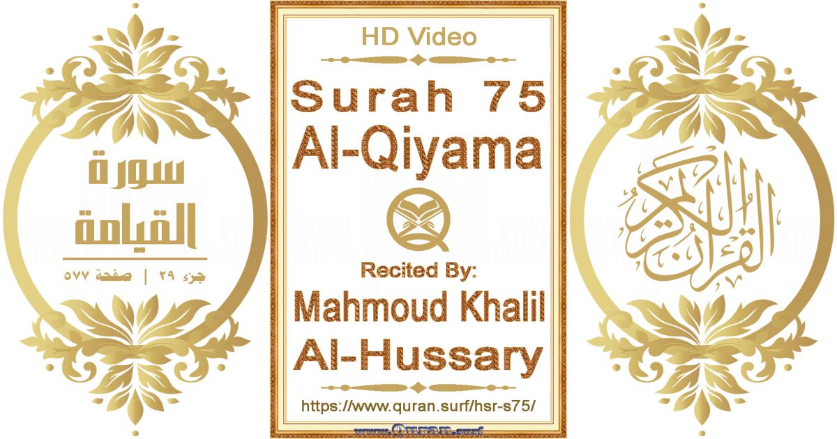 - Surah 75 Al-Qiyama video recited by Mahmoud Khalil Al-Hussary: www.quran.surf/y/?hsr=s75 *
