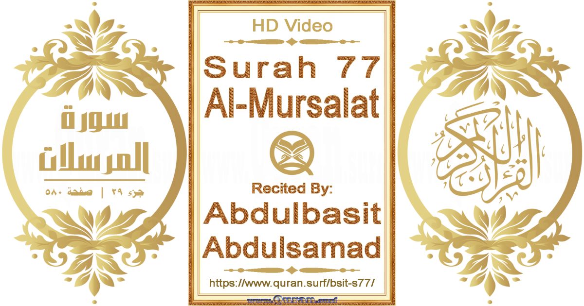 - Surah 77 Al-Mursalat video recited by Abdulbasit Abdulsamad: www.quran.surf/y/?bsit=s77 *