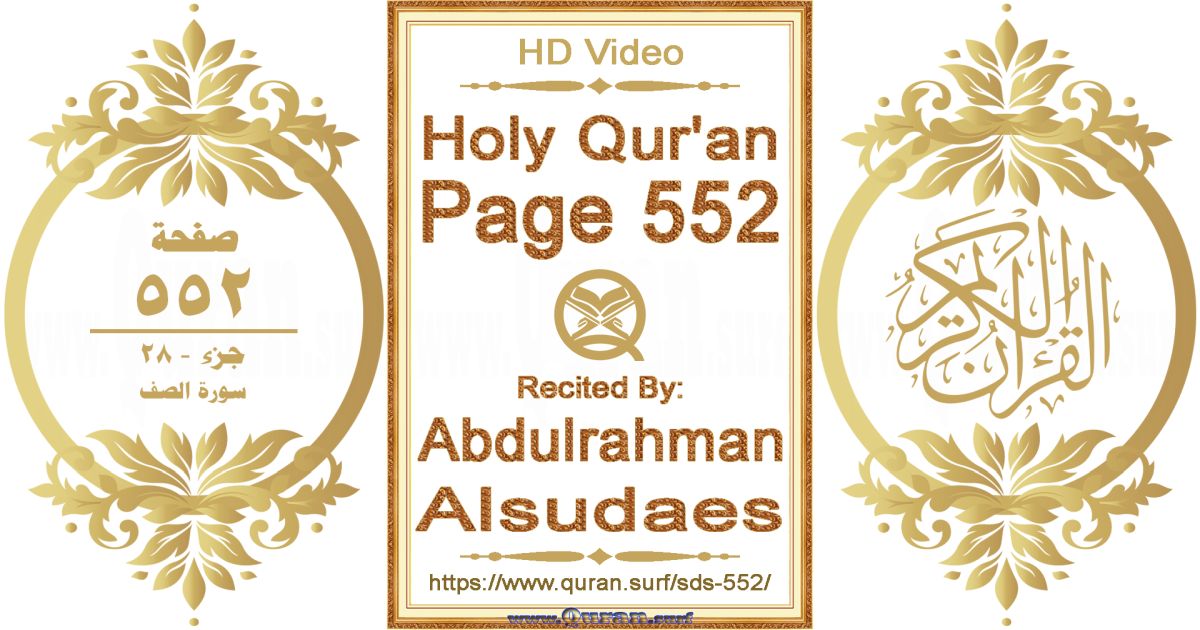 - Holy Qur’an Page 552 video recited by Abdulrahman Alsudaes: www.quran.surf/y/?sds=p552 *