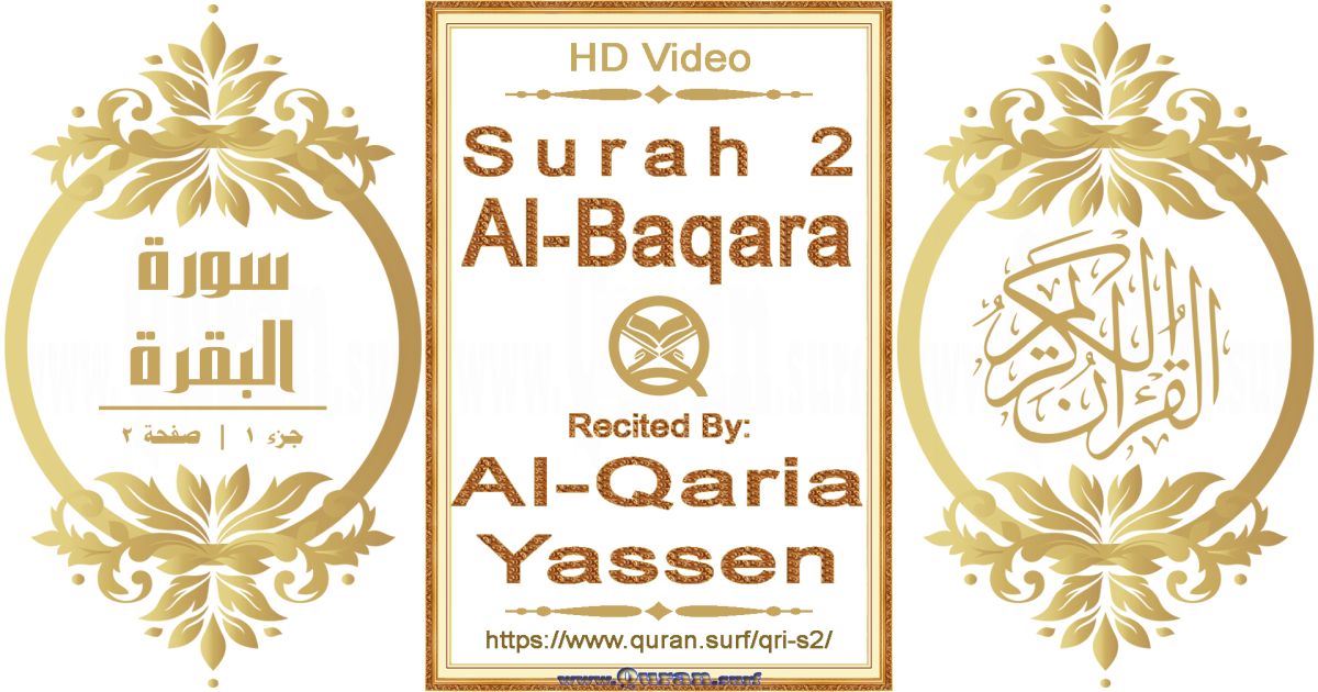 - Horizontal video of Surah 2 Al-Baqara recited by Al-Qaria Yassen: www.quran.surf/y/?qri=s2 *