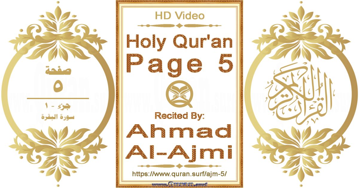 - Holy Qur’an Page 5 video recited by Ahmad Al-Ajmi: www.quran.surf/y/?ajm=p5 *