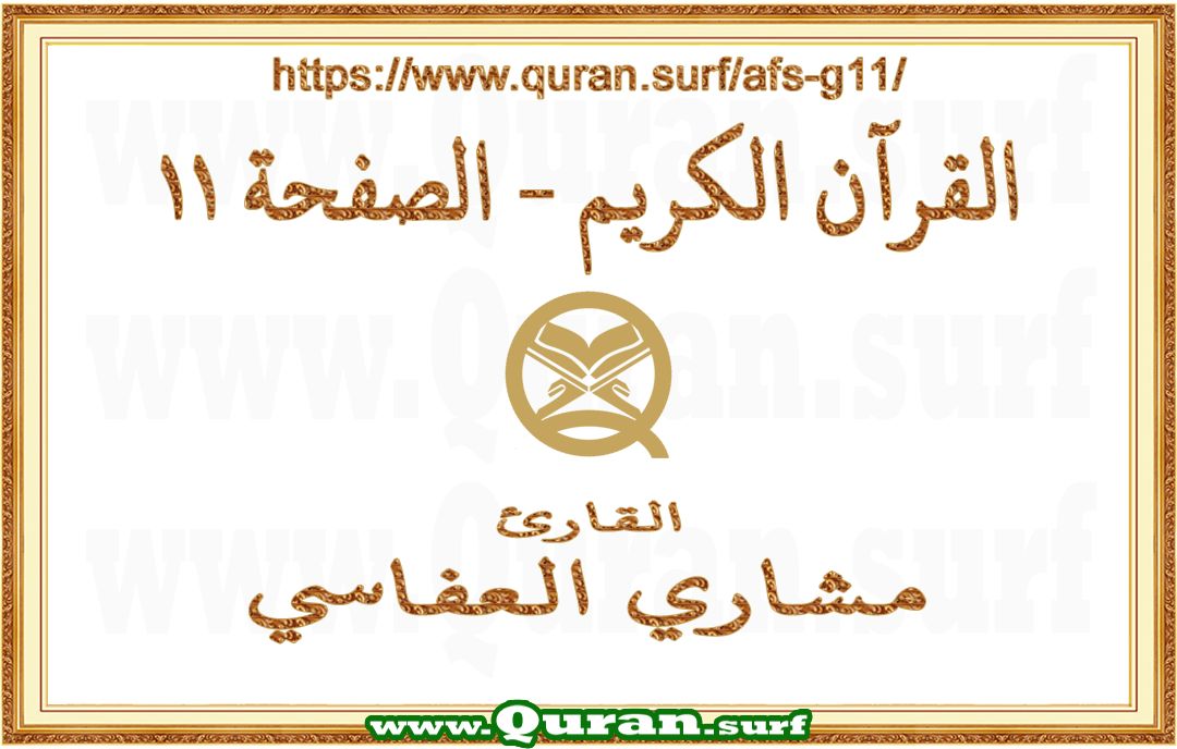 - Horizontal video of Holy Qur’an Page 11 recited by Mishary Al Afasi: www.quran.surf/afs-11/ *