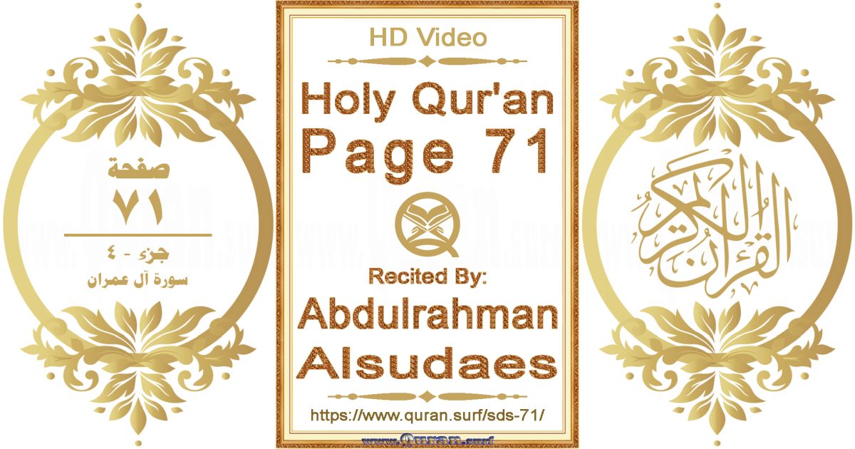 - Holy Qur’an Page 71 video recited by Abdulrahman Alsudaes: www.quran.surf/y/?sds=p71 *