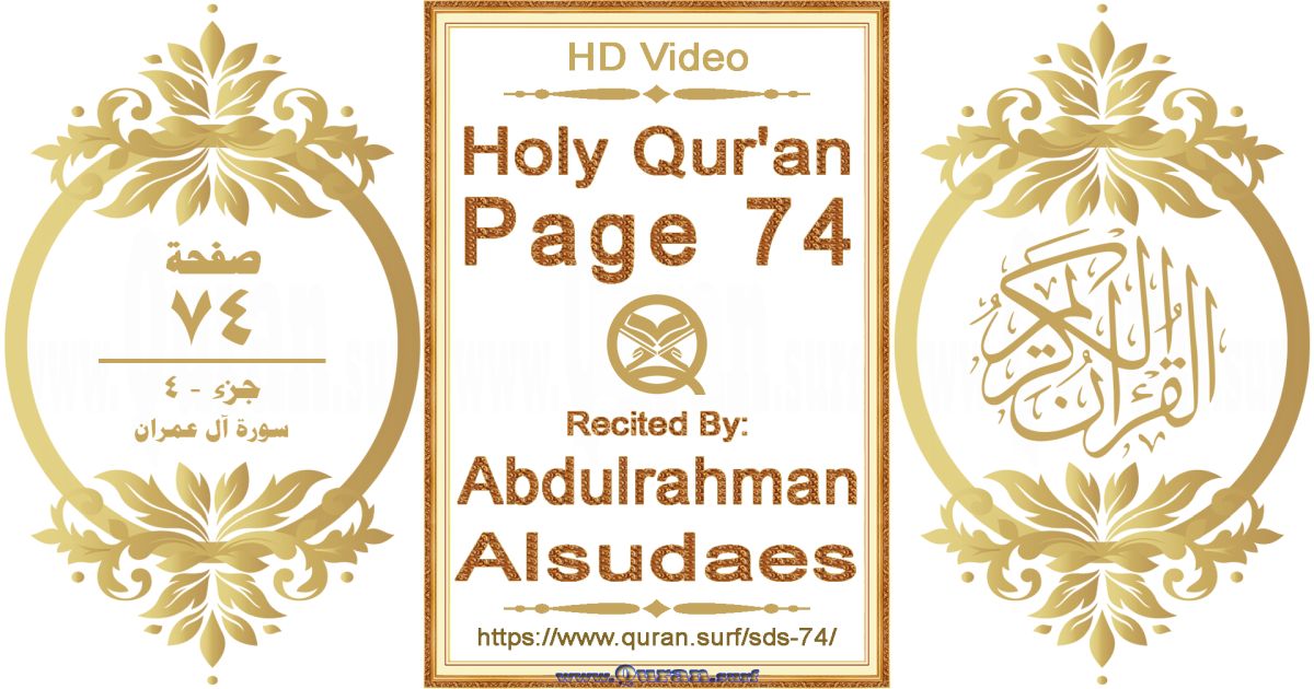 - Holy Qur’an Page 74 video recited by Abdulrahman Alsudaes: www.quran.surf/y/?sds=p74 *