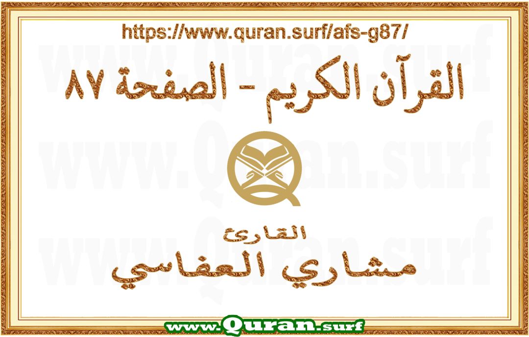 - Horizontal video of Holy Qur’an Page 87 recited by Mishary Al Afasi: www.quran.surf/afs-87/ *