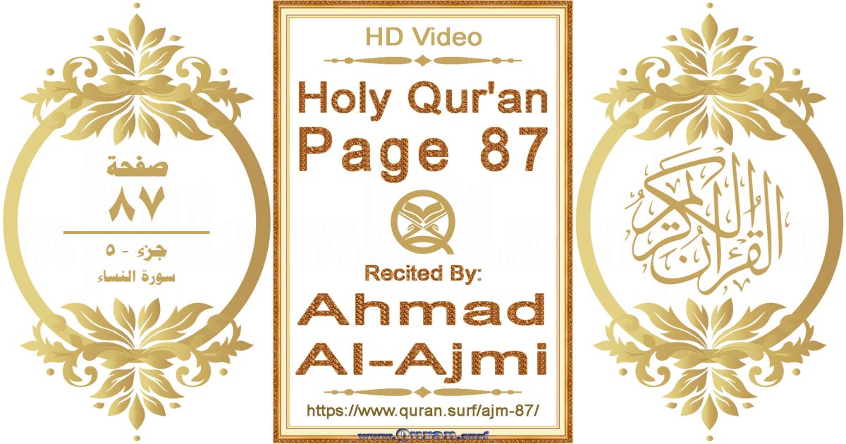 - Holy Qur’an Page 87 video recited by Ahmad Al-Ajmi: www.quran.surf/y/?ajm=p87 *