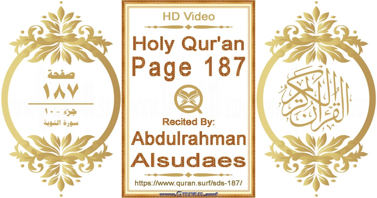 - Holy Qur’an Page 187 video recited by Abdulrahman Alsudaes: www.quran.surf/y/?sds=p187 *