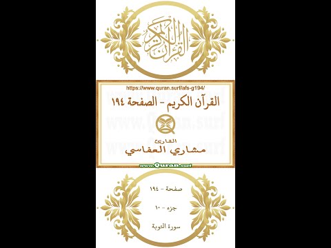 - Horizontal video of Holy Qur’an Page 194 recited by Mishary Al Afasi: www.quran.surf/afs-194/ *