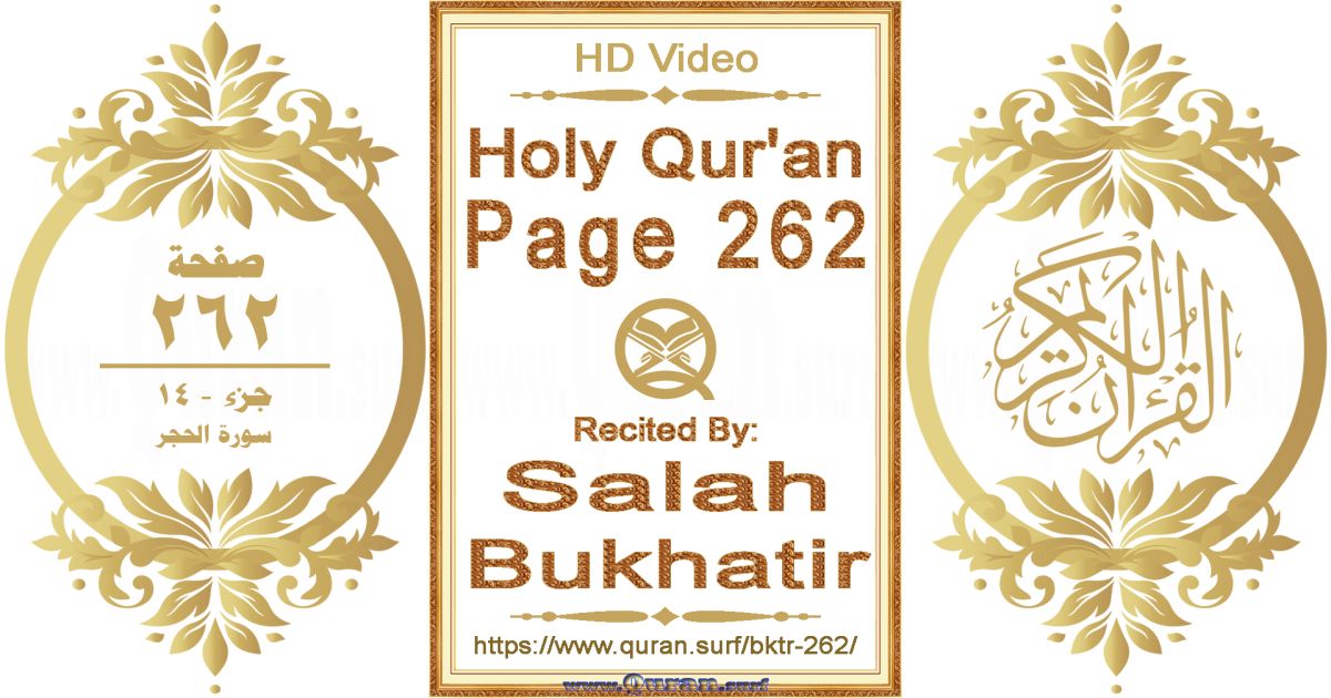You are now watching a beautiful HD horizontal video of the Holy Qur’an Page 262. This is a video highlighting the Quranic text with a beautiful and heart touching recitation by Salah Bukhatir. Quran.surf horizontal videos are generally show only five lines of Quran text on one screen. It follows the page layout of the printed version of the Mus’haf (Rasm Uthmani). It can be viewed well on small mobile screens and large projector screens. So it gives a great way for those who want to listen, learn or teach the recitation of the Qur’an well. Our page-level videos are very useful for the comparison study on different recitations. These videos are the main resource for our “World Wide Online Qur’an Hifz Program (WWOQHP).”