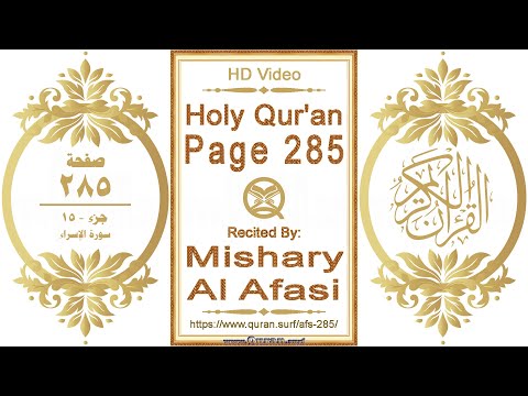 വിശുദ്ധ ഖുർആൻ പേജ് 285 – നിങ്ങളുടെ സ്ക്രീനിൽ മനോഹരമായ രൂപത്തിൽ ഒരു ഹൈ ഡെഫനിഷൻ വീഡിയോ കാഴ്ച. കുട്ടികൾക്കും മറ്റുള്ളവർക്കും ഖുർആൻ പഠിക്കുന്നതിനുള്ള മികച്ച ഒരു രൂപം ഞങ്ങൾ നൽകുന്നു. മഷാരി അൽ അഫാസിയുടെ മനോഹരമായ, ഹൃദയസ്പർശിയായ പാരായണത്തോടൊപ്പം ഖുർആനിന്റെ ഭാഗം ഹൈലൈറ് ചെയ്ത് കാണിക്കുന്നു. മുസ്ഹഫിന്റെ പ്രിന്റ് കോപ്പി പ്രകാരം ഖുർആൻ ഫുൾ സ്ക്രീനിൽ കാണുന്നു. വിവിധ പാരായണങ്ങളുടെ താരതമ്യ പഠനത്തിന് പേജ്-ലെവൽ വീഡിയോകൾ വളരെ ഉപയോഗപ്രദമാണ്. ഈ വീഡിയോകൾ ഞങ്ങളുടെ “വേൾഡ് വൈഡ് ഓൺലൈൻ ഖുർആൻ മനഃപാഠ പദ്ധതിയുടെ” (World Wide Online Qur’an Hifz Program (WWOQHP)) പ്രധാന ഉറവിടമാണ്.