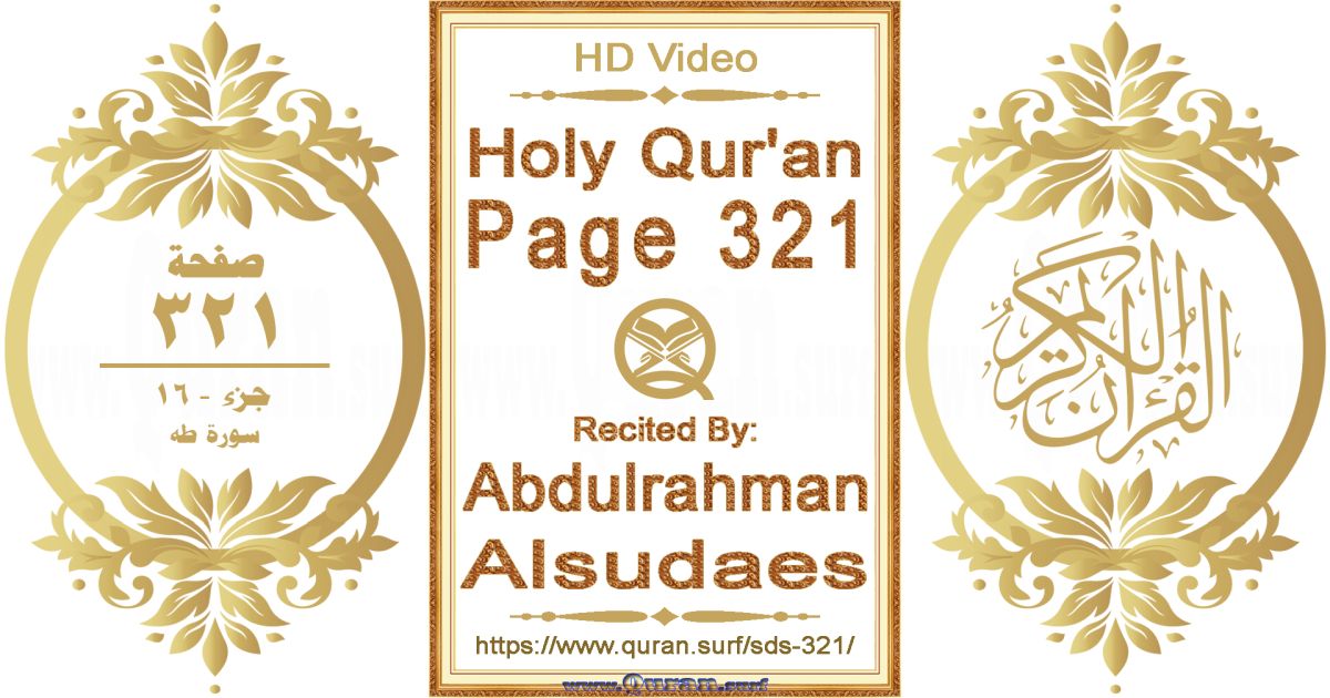 - Holy Qur’an Page 321 video recited by Abdulrahman Alsudaes: www.quran.surf/y/?sds=p321 *