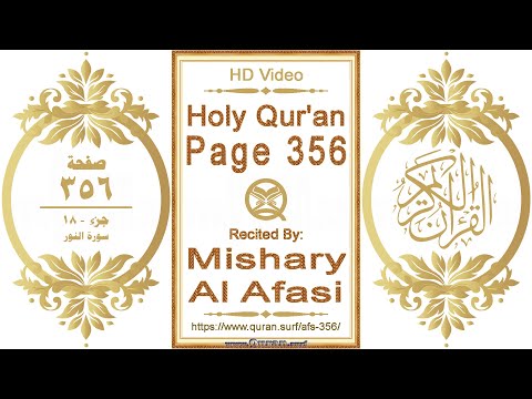 വിശുദ്ധ ഖുർആൻ പേജ് 356 – നിങ്ങളുടെ സ്ക്രീനിൽ മനോഹരമായ രൂപത്തിൽ ഒരു ഹൈ ഡെഫനിഷൻ വീഡിയോ കാഴ്ച. കുട്ടികൾക്കും മറ്റുള്ളവർക്കും ഖുർആൻ പഠിക്കുന്നതിനുള്ള മികച്ച ഒരു രൂപം ഞങ്ങൾ നൽകുന്നു. മഷാരി അൽ അഫാസിയുടെ മനോഹരമായ, ഹൃദയസ്പർശിയായ പാരായണത്തോടൊപ്പം ഖുർആനിന്റെ ഭാഗം ഹൈലൈറ് ചെയ്ത് കാണിക്കുന്നു. മുസ്ഹഫിന്റെ പ്രിന്റ് കോപ്പി പ്രകാരം ഖുർആൻ ഫുൾ സ്ക്രീനിൽ കാണുന്നു. വിവിധ പാരായണങ്ങളുടെ താരതമ്യ പഠനത്തിന് പേജ്-ലെവൽ വീഡിയോകൾ വളരെ ഉപയോഗപ്രദമാണ്. ഈ വീഡിയോകൾ ഞങ്ങളുടെ “വേൾഡ് വൈഡ് ഓൺലൈൻ ഖുർആൻ മനഃപാഠ പദ്ധതിയുടെ” (World Wide Online Qur’an Hifz Program (WWOQHP)) പ്രധാന ഉറവിടമാണ്.