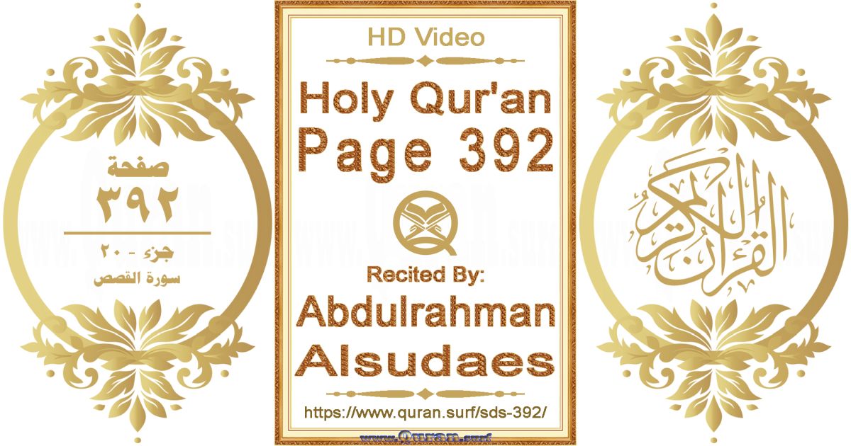 - Holy Qur’an Page 392 video recited by Abdulrahman Alsudaes: www.quran.surf/y/?sds=p392 *