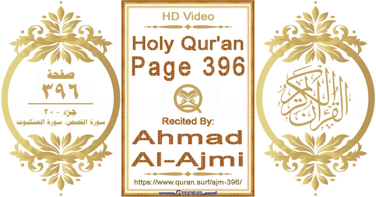 - Holy Qur’an Page 396 video recited by Ahmad Al-Ajmi: www.quran.surf/y/?ajm=p396 *