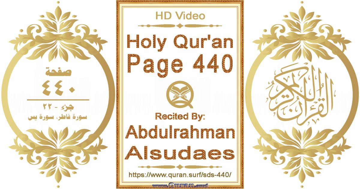 - Holy Qur’an Page 440 video recited by Abdulrahman Alsudaes: www.quran.surf/y/?sds=p440 *