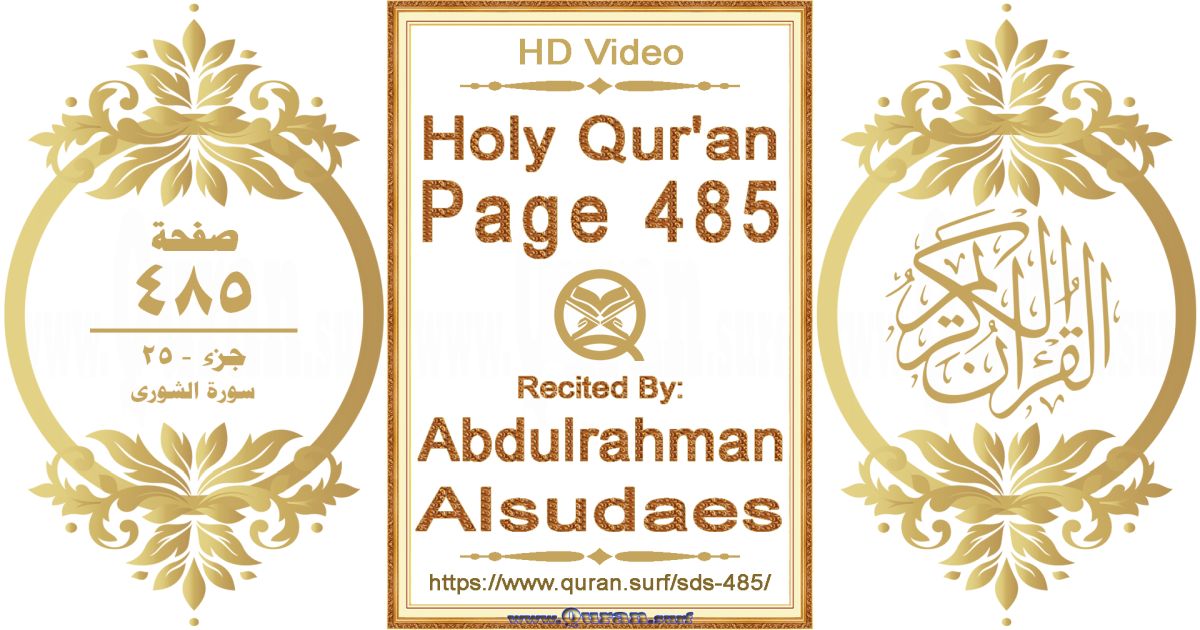 - Holy Qur’an Page 485 video recited by Abdulrahman Alsudaes: www.quran.surf/y/?sds=p485 *