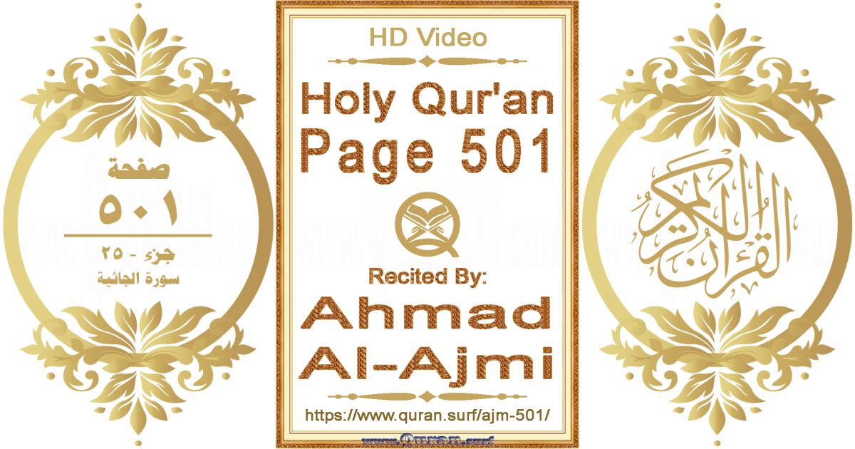 - Holy Qur’an Page 501 video recited by Ahmad Al-Ajmi: www.quran.surf/y/?ajm=p501 *