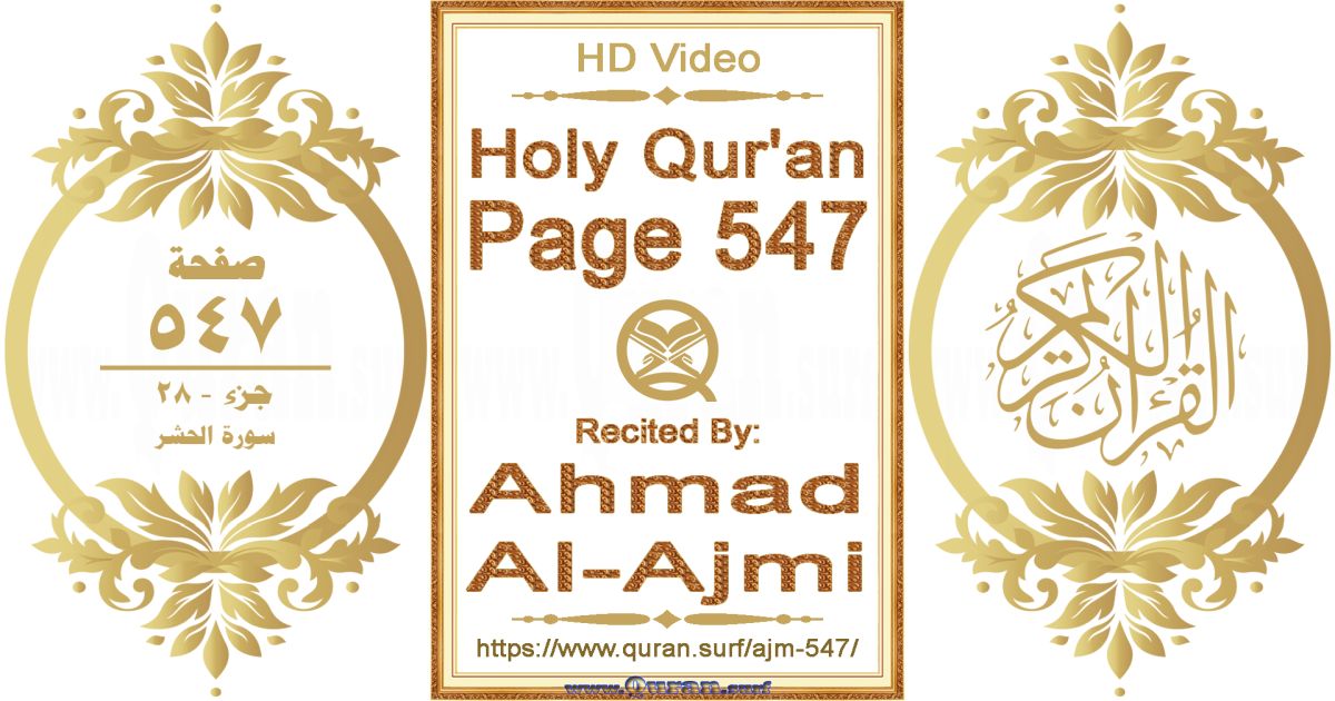 - القرآن الصفحة ٥٤٧ فيديو بتلاوة أحمد العجمي: www.quran.surf/y/?ajm=p547 *