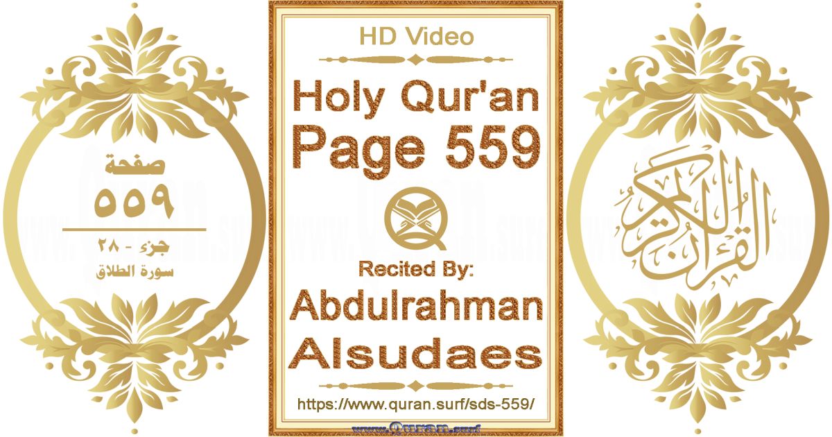 - Holy Qur’an Page 559 video recited by Abdulrahman Alsudaes: www.quran.surf/y/?sds=p559 *