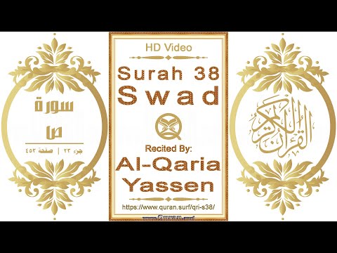 - Horizontal video of Surah 38 Swad recited by Al-Qaria Yassen: www.quran.surf/y/?qri=s38 *