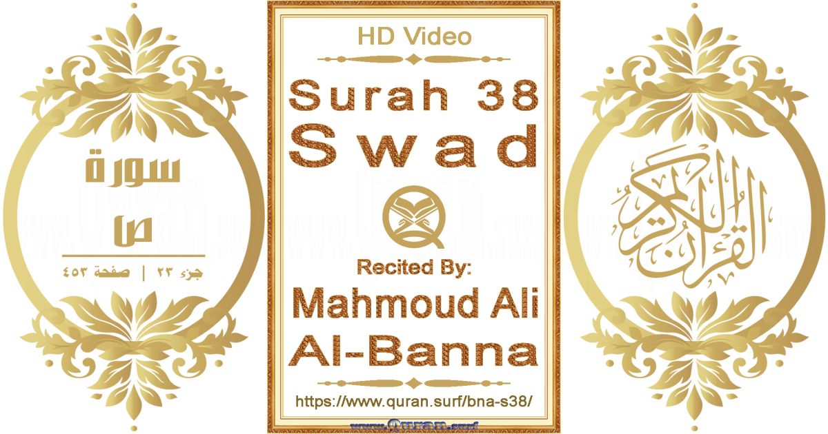 - Surah 38 Swad video recited by Mahmoud Ali Al-Banna: www.quran.surf/y/?bna=s38 *