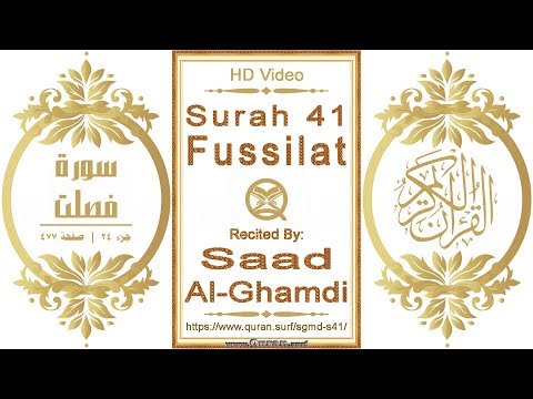 സൂറ: ഫുസ്സിലത്ത് – നിങ്ങളുടെ സ്ക്രീനിൽ മനോഹരമായ രൂപത്തിൽ ഒരു ഹൈ ഡെഫനിഷൻ വീഡിയോ കാഴ്ച. കുട്ടികൾക്കും മറ്റുള്ളവർക്കും ഖുർആൻ പഠിക്കുന്നതിനുള്ള മികച്ച ഒരു രൂപം ഞങ്ങൾ നൽകുന്നു. സഅദ് അൽ ഗാമിദിയുടെ മനോഹരമായ, ഹൃദയസ്പർശിയായ പാരായണത്തോടൊപ്പം ഖുർആനിന്റെ ഭാഗം ഹൈലൈറ് ചെയ്ത് കാണിക്കുന്നു. മുസ്ഹഫിന്റെ പ്രിന്റ് കോപ്പി പ്രകാരം ഖുർആൻ ഫുൾ സ്ക്രീനിൽ കാണുന്നു.
