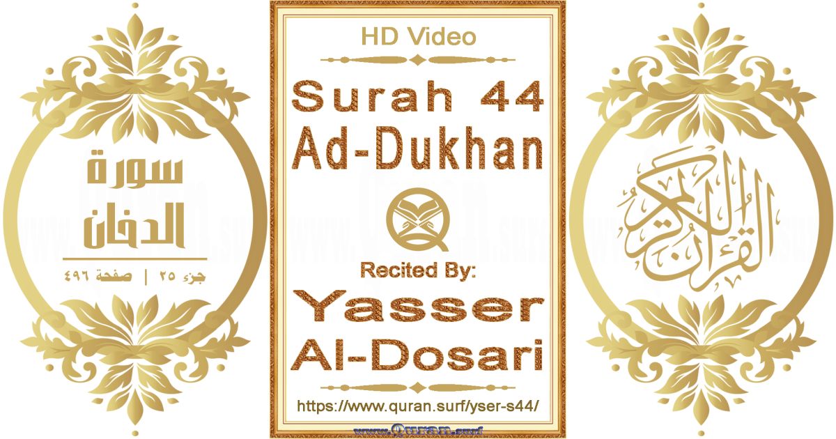 - Surah 44 Ad-Dukhan video recited by Yasser Al-Dosari: www.quran.surf/y/?yser=s44 *