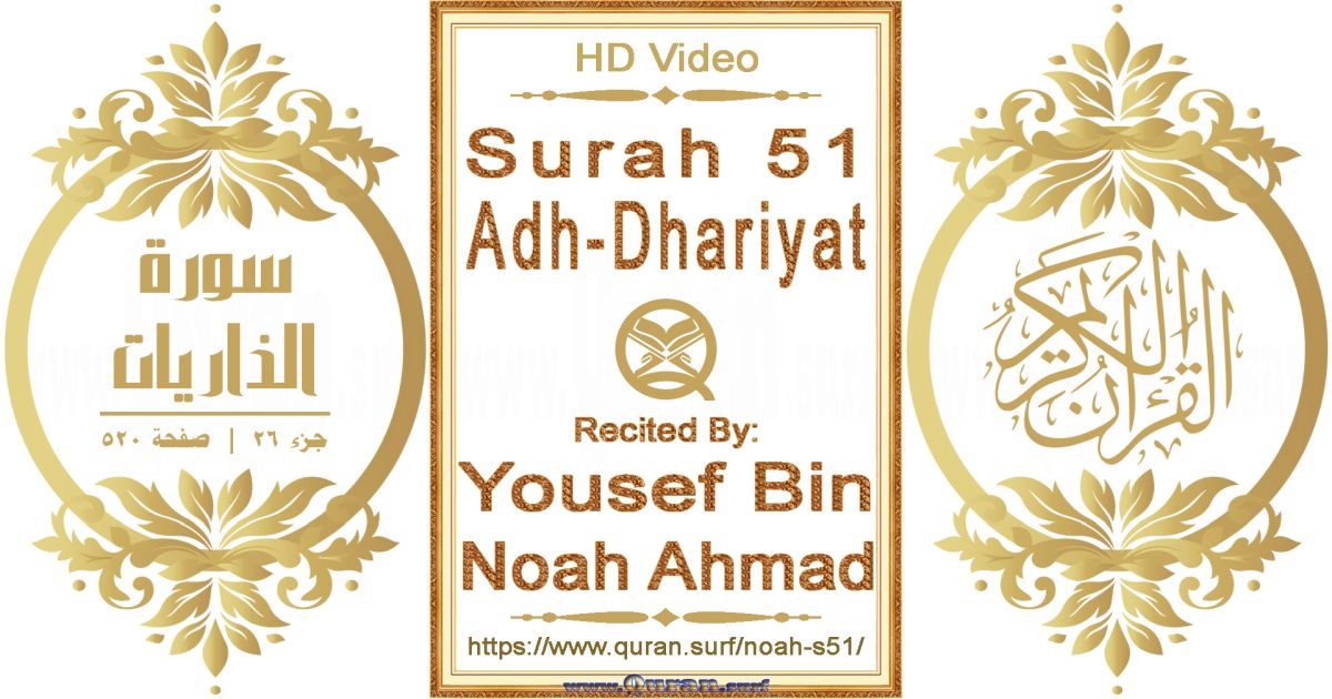 - Surah 51 Adh-Dhariyat video recited by Yousef Bin Noah Ahmad: www.quran.surf/y/?noah=s51 *