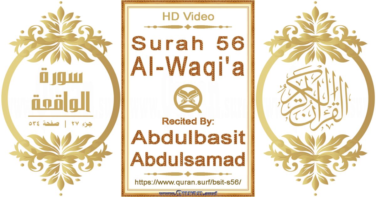 - Surah 56 Al-Waqi’a video recited by Abdulbasit Abdulsamad: www.quran.surf/y/?bsit=s56 *
