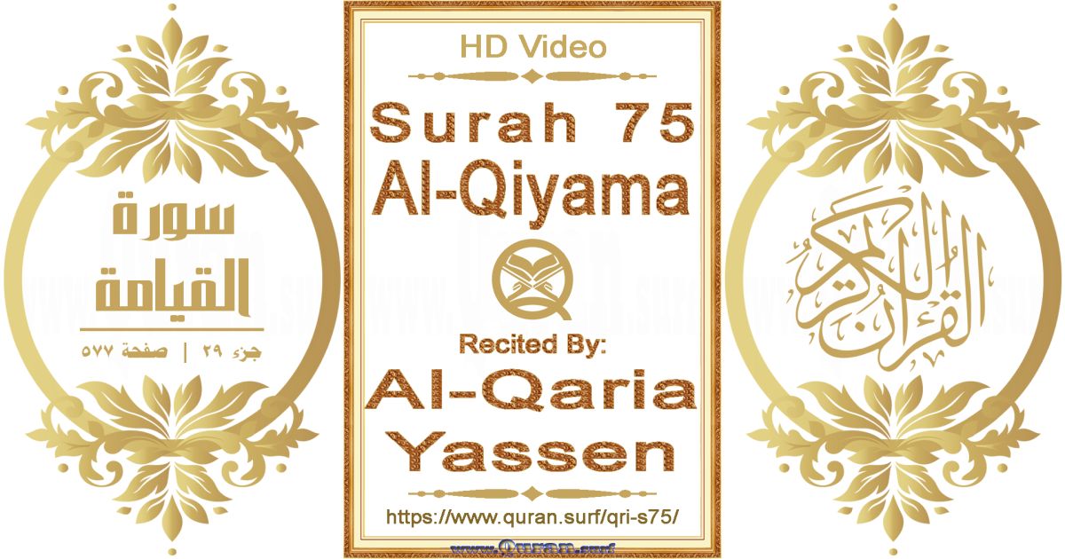 - Horizontal video of Surah 75 Al-Qiyama recited by Al-Qaria Yassen: www.quran.surf/y/?qri=s75 *