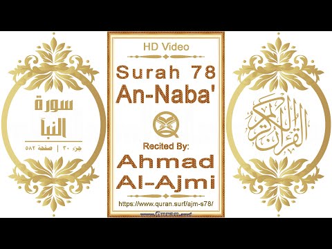 സൂറ: അന്നബഹ് – നിങ്ങളുടെ സ്ക്രീനിൽ മനോഹരമായ രൂപത്തിൽ ഒരു ഹൈ ഡെഫനിഷൻ വീഡിയോ കാഴ്ച. കുട്ടികൾക്കും മറ്റുള്ളവർക്കും ഖുർആൻ പഠിക്കുന്നതിനുള്ള മികച്ച ഒരു രൂപം ഞങ്ങൾ നൽകുന്നു. അഹ്മദ് അൽ അജ്മിയുടെ മനോഹരമായ, ഹൃദയസ്പർശിയായ പാരായണത്തോടൊപ്പം ഖുർആനിന്റെ ഭാഗം ഹൈലൈറ് ചെയ്ത് കാണിക്കുന്നു. മുസ്ഹഫിന്റെ പ്രിന്റ് കോപ്പി പ്രകാരം ഖുർആൻ ഫുൾ സ്ക്രീനിൽ കാണുന്നു.