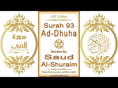 - Surah 93 Ad-Dhuha video recited by Saud Al-Shuraim: www.quran.surf/y/?shur=s93 *