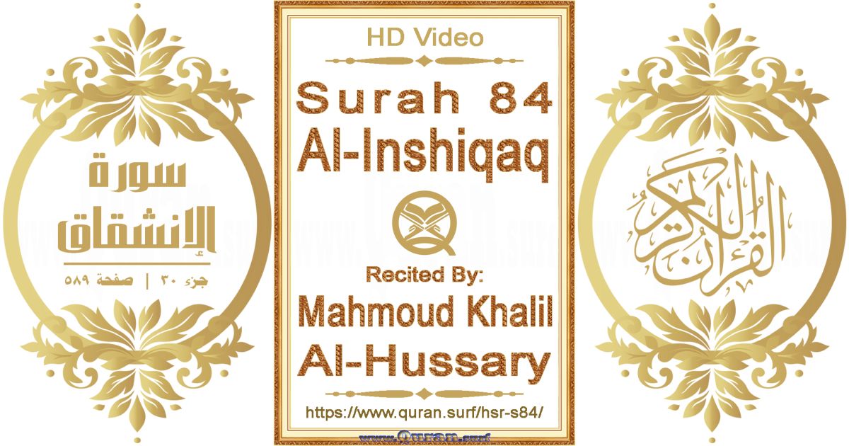 - Surah 84 Al-Inshiqaq video recited by Mahmoud Khalil Al-Hussary: www.quran.surf/y/?hsr=s84 *