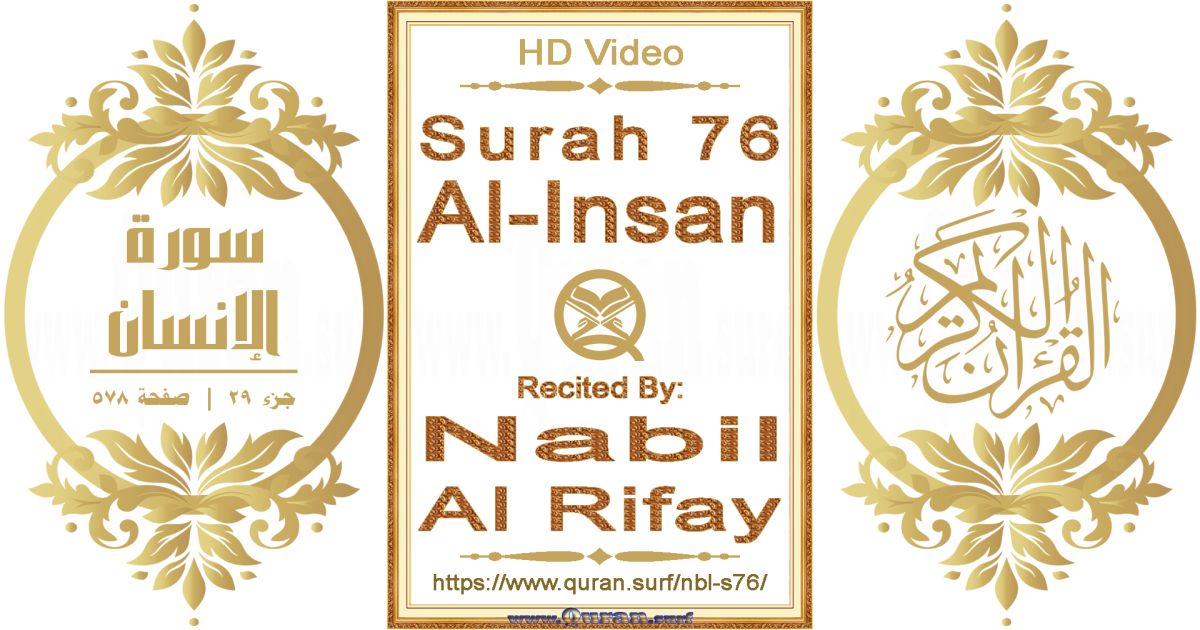 - To get more horizontal videos on Surah 76 Al-Insan by more reciters: www.quran.surf/s76/