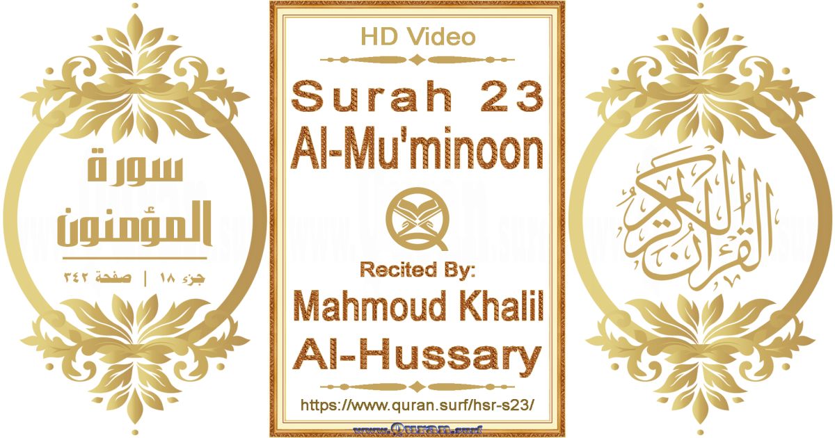 Surah 023 Al-Mu’minoon || Reciting by Mahmoud Khalil Al-Hussary