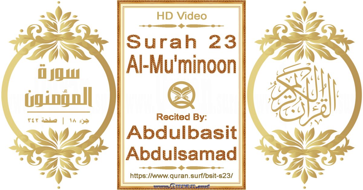 سورة المؤمنون – عرض الفيديو عالي الدقة في شكل جميل على الشاشة. نعطي الأطفال والآخرين طريقة رائعة لتعلم القرآن. ويبرز الفيديو الجزء القرآن الكريم جنبا إلى جنب مع تلاوة جميلة ولمسة القلب محمود علي البنا. القرآن يظهر في كامل الشاشة وفقا للنسخة المطبوعة مصحف.
