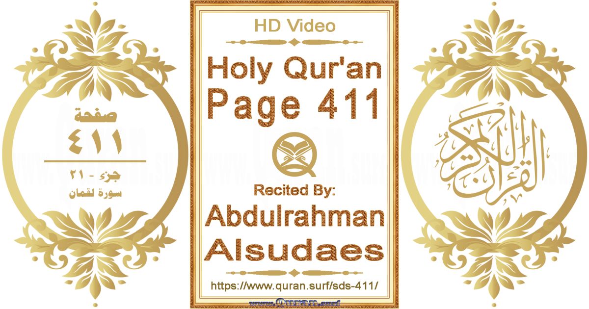 - Holy Qur’an Page 411 video recited by Abdulrahman Alsudaes: www.quran.surf/y/?sds=p411 *