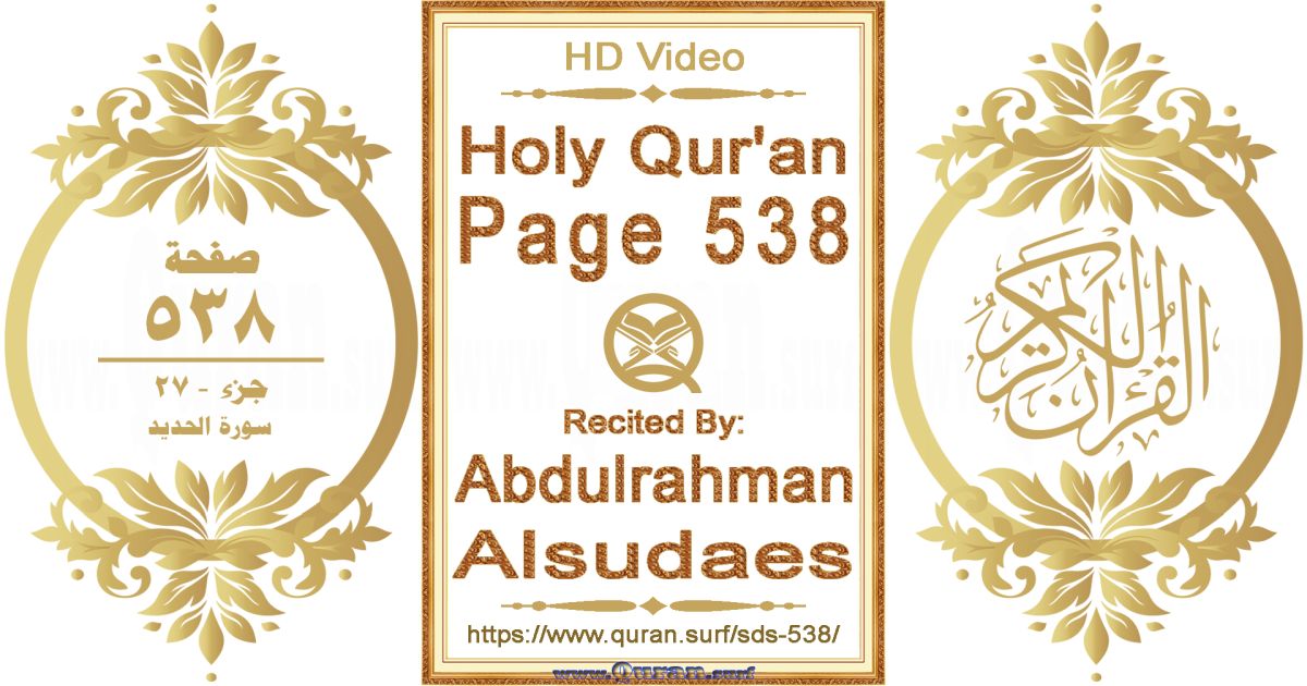 - Holy Qur’an Page 538 video recited by Abdulrahman Alsudaes: www.quran.surf/y/?sds=p538 *