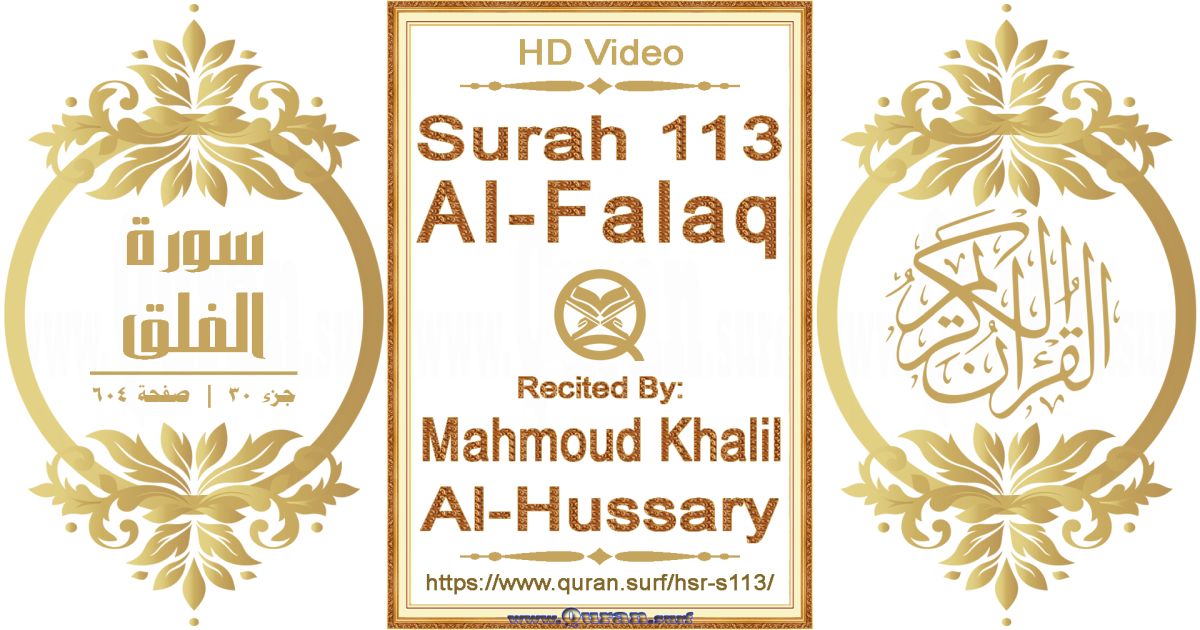 - To get more horizontal videos on Surah 113 Al-Falaq by more reciters: www.quran.surf/s113/